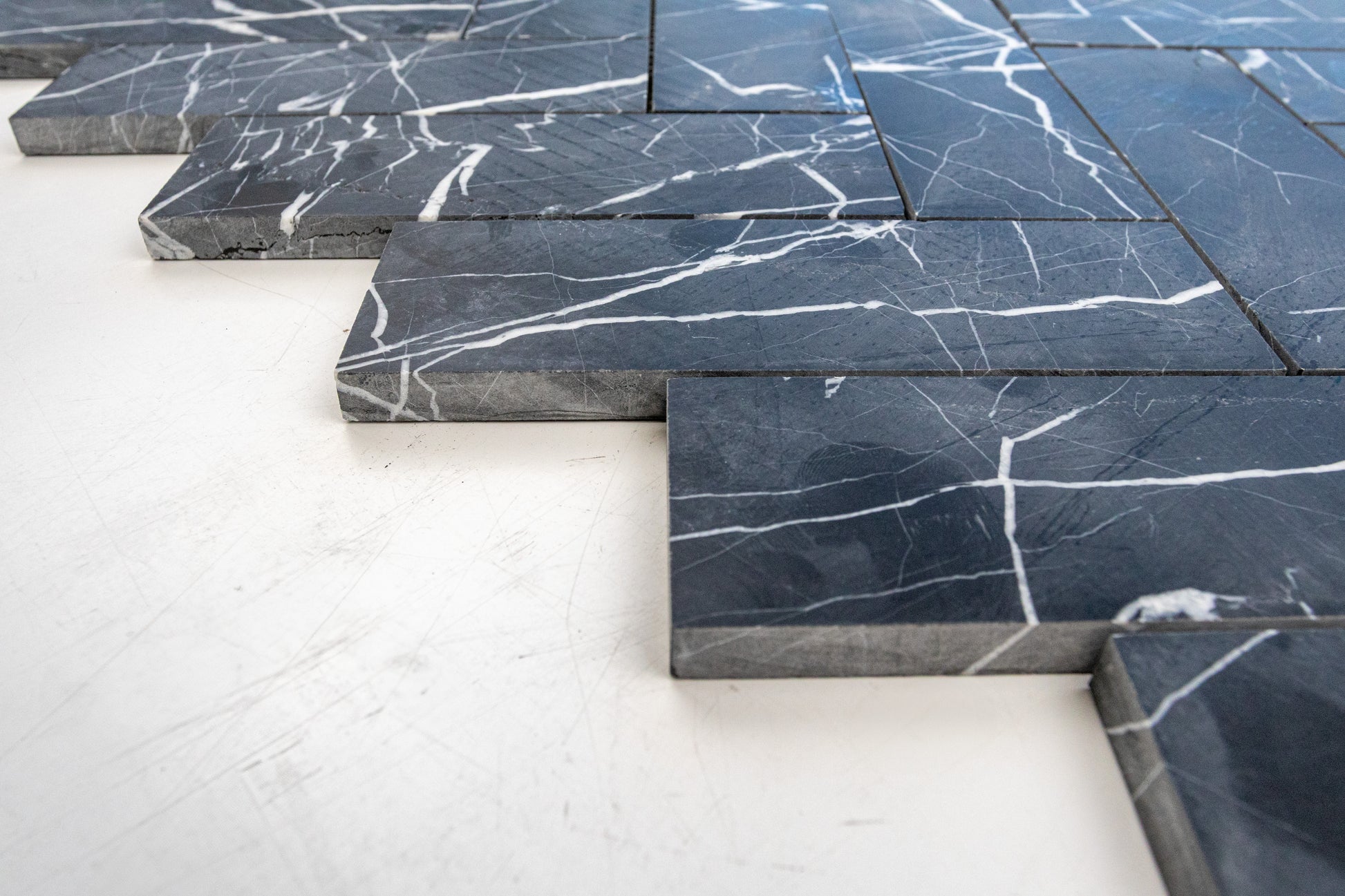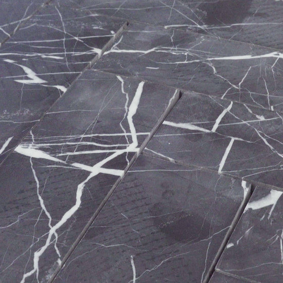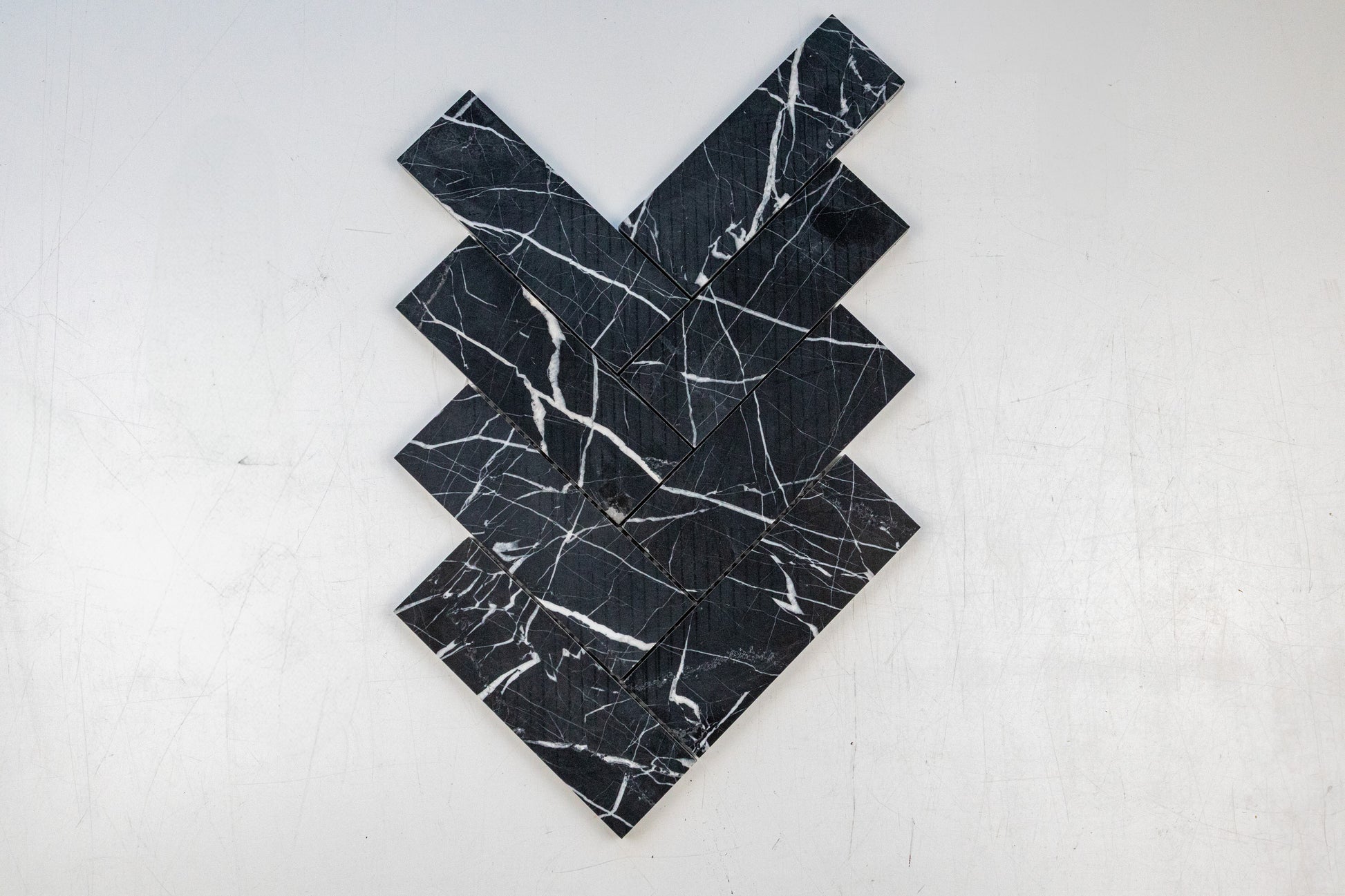 Transform your space with the timeless elegance of our 2" x 6" Herringbone Nero Marquina tiles, featuring the dramatic beauty of classic black marble with striking white veining. This sophisticated herringbone pattern creates dynamic visual movement while showcasing the natural luxury and depth that only genuine marble can provide. Available in your choice of honed or polished finish, these tiles offer versatility to suit your design vision. Perfect for backsplashes, accent walls, flooring, or feature installations, this Nero Marquina herringbone pattern brings sophisticated European elegance to kitchens, bathrooms, entryways, and living spaces, creating a statement that feels both timeless and undeniably luxurious.