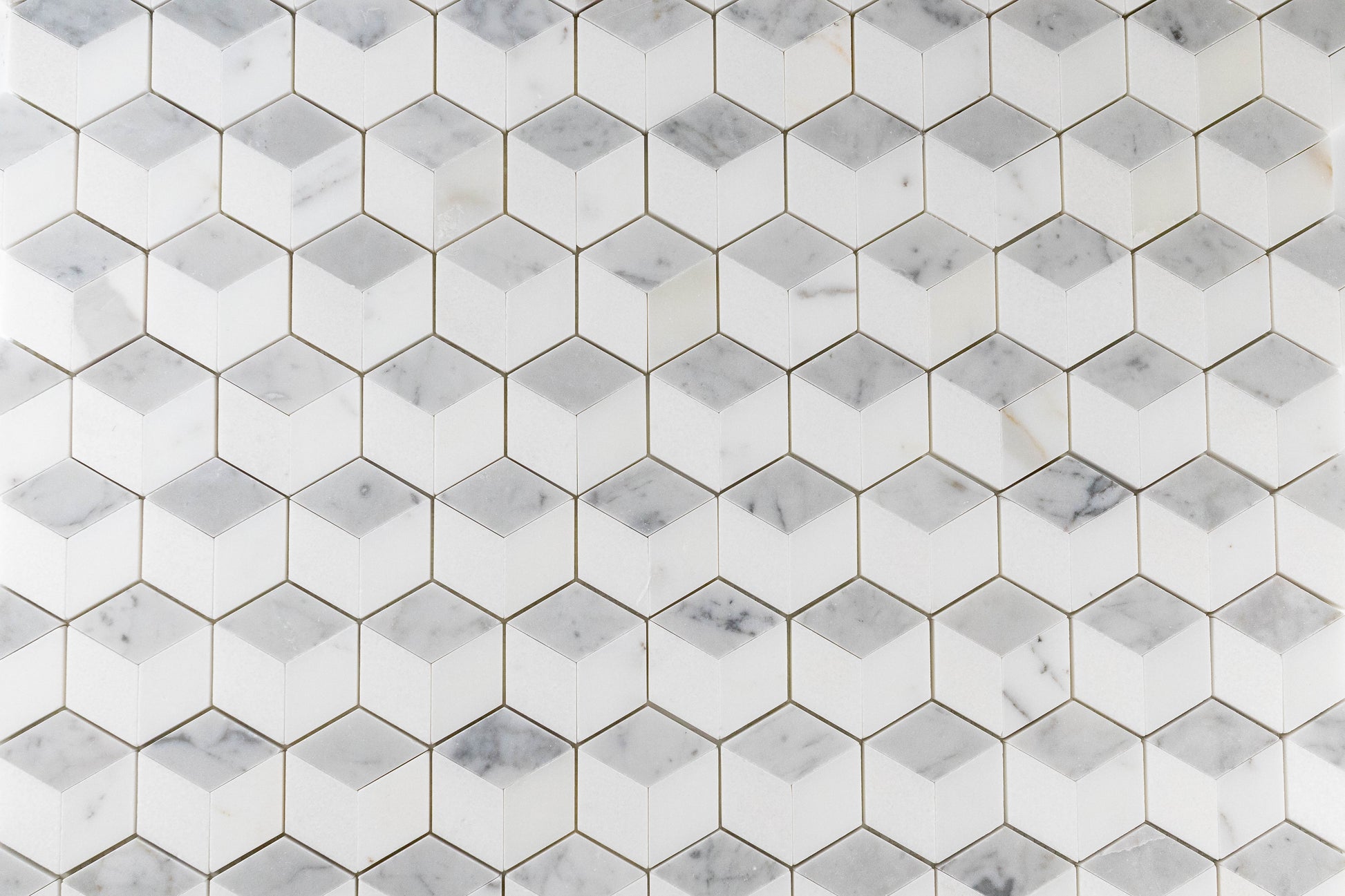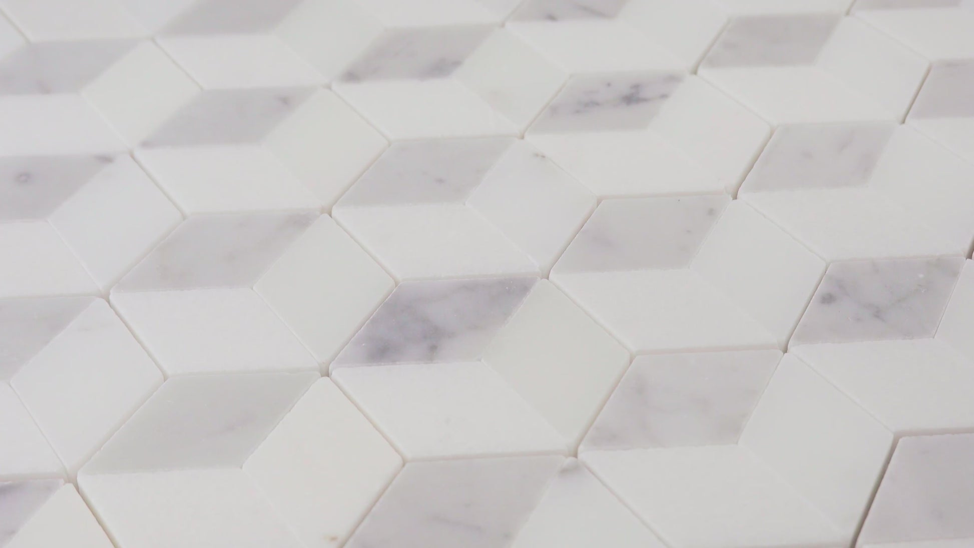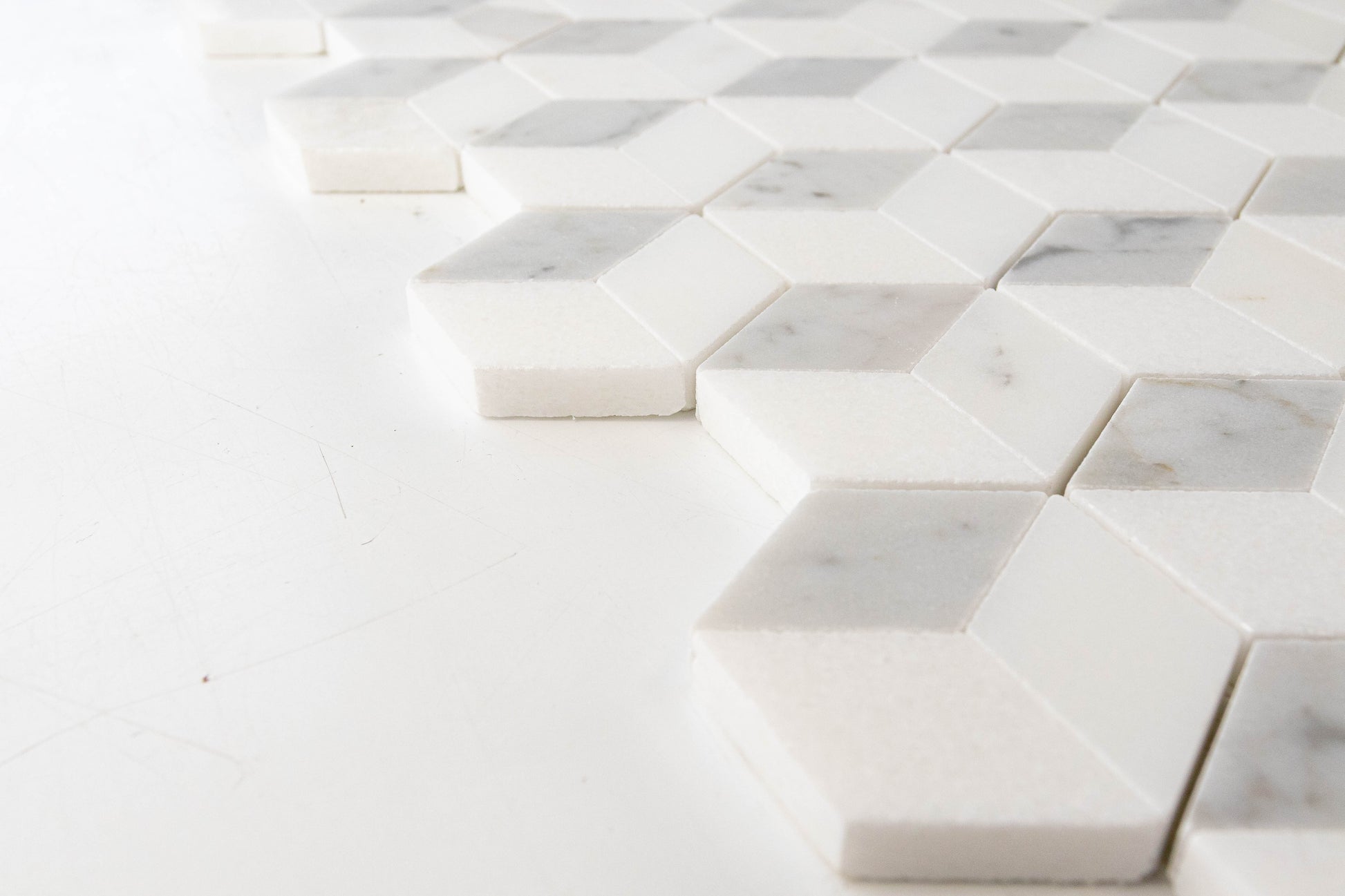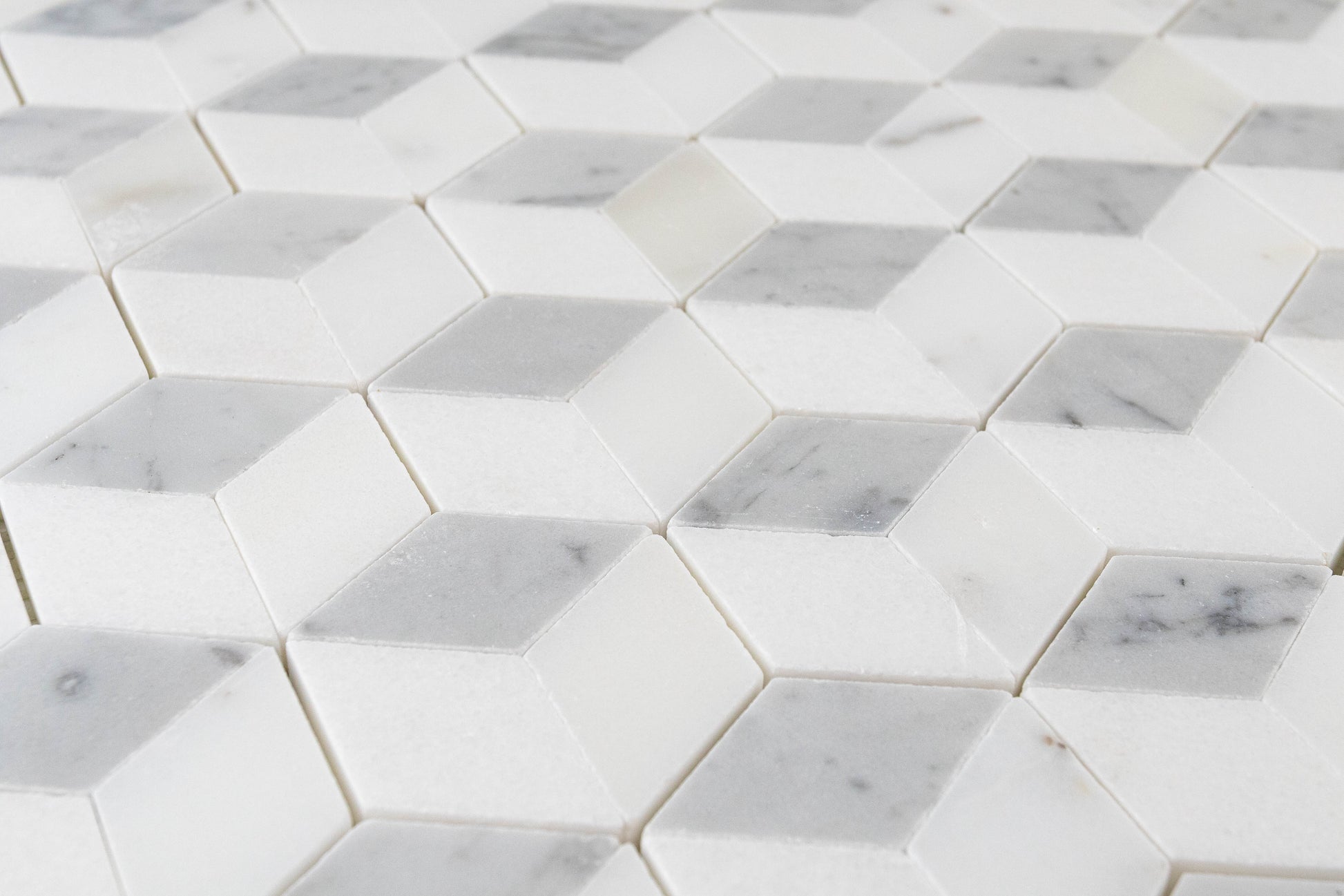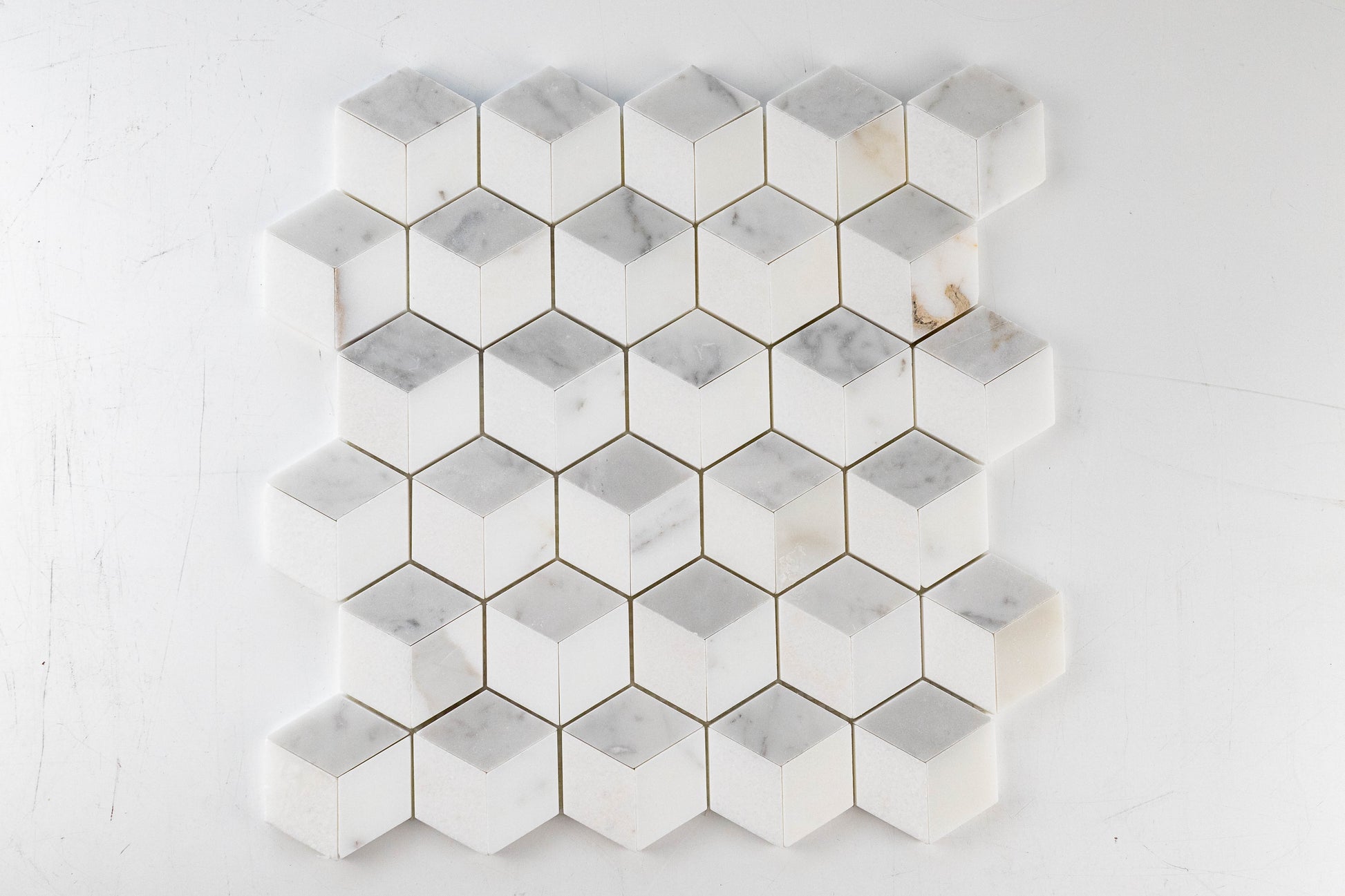 Geometric mosaics will always stand the test of time! Our 3D Cube in calacatta, carrara, and thassos is a versatile blend of colors that can be used for powder room floors or kitchen backsplash applications. Pair this with a beautiful subway tile or a stone field 12x24 and your design is ready to be a show stopper.