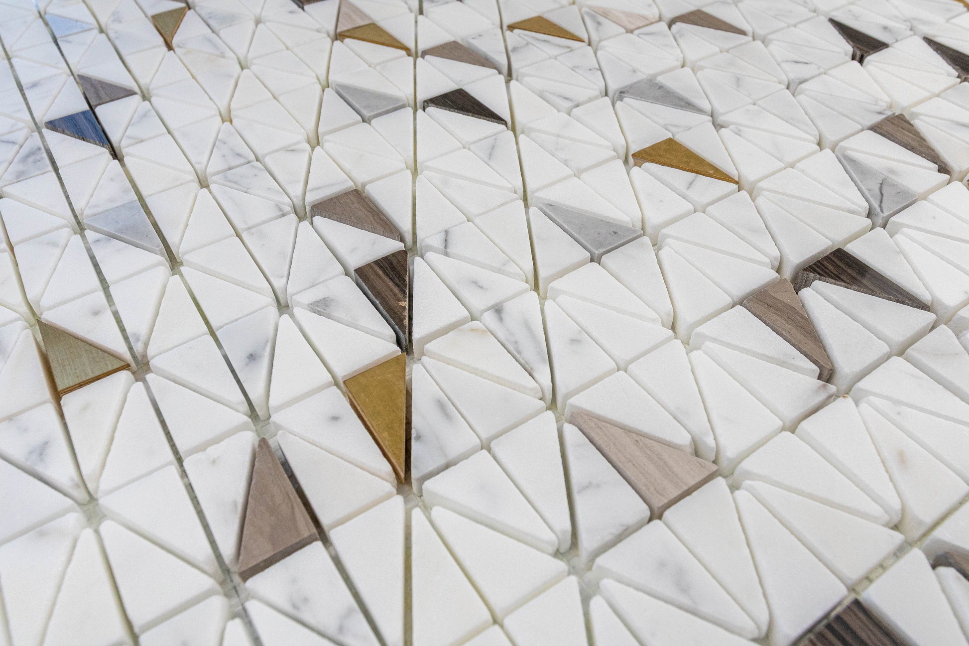 Disclaimer: Tiles containing brass may tarnish over time if used in wet areas.
