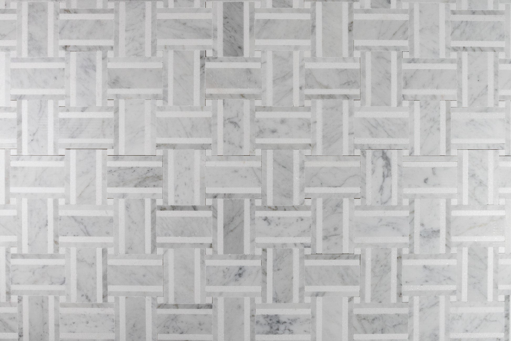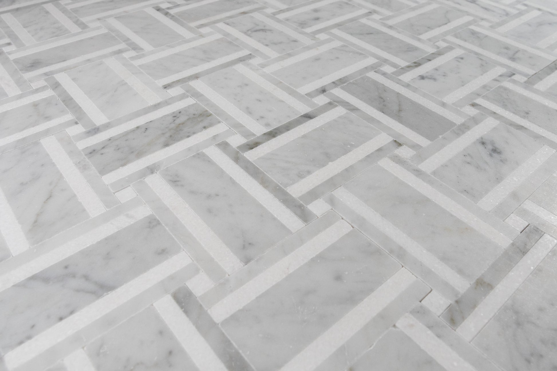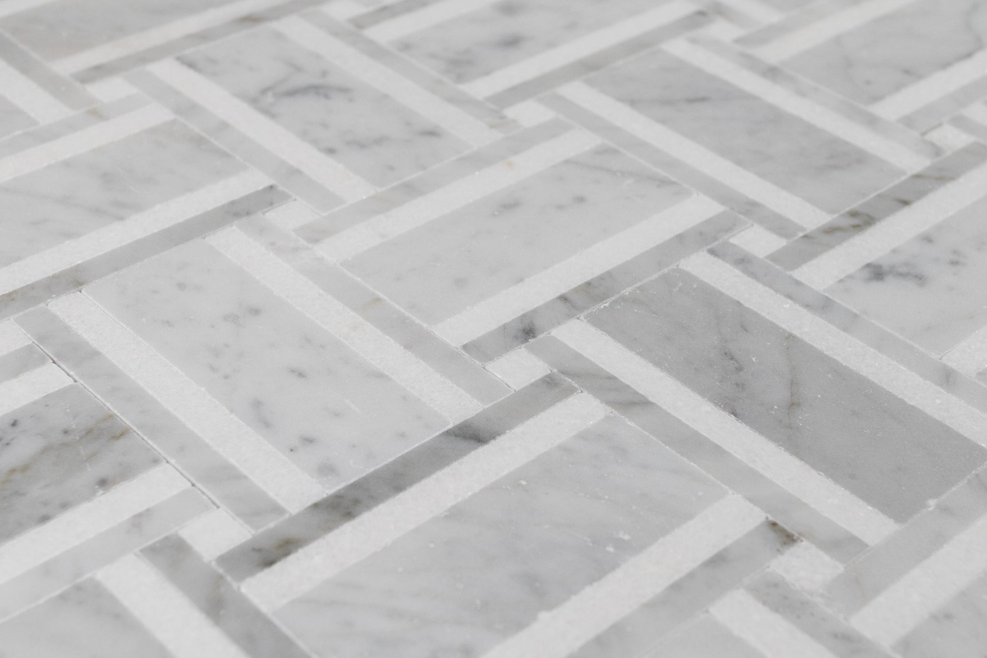 Grand Bacon by Stonebridge Mosaics is yet another classic staple for us. With clean geometric lines, this modern basketweave provides a soft elegant feel whether installed on a floor or a wall. For a different installation, try this diagonal on a backsplash! Offered in more than 5 different color ways, there is a Grand Bacon for any design.