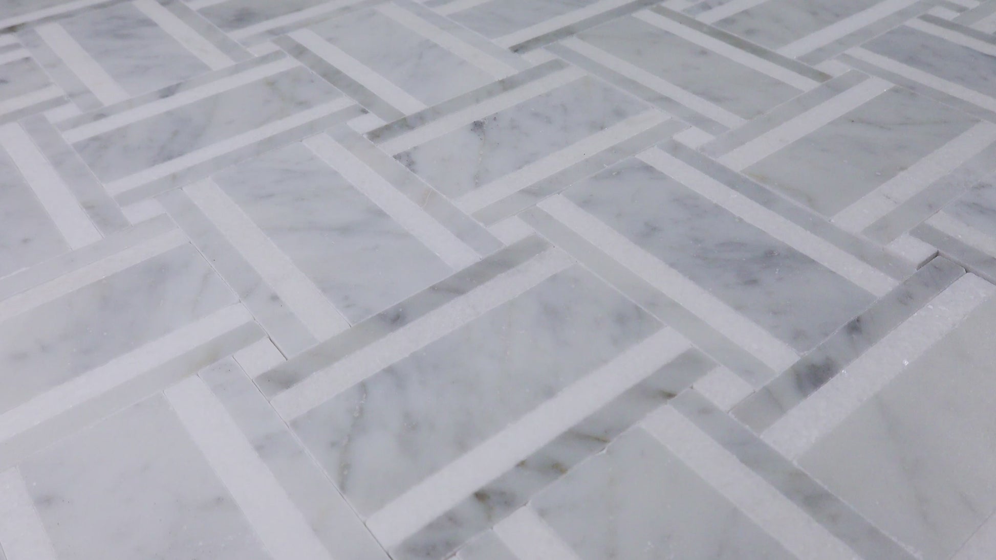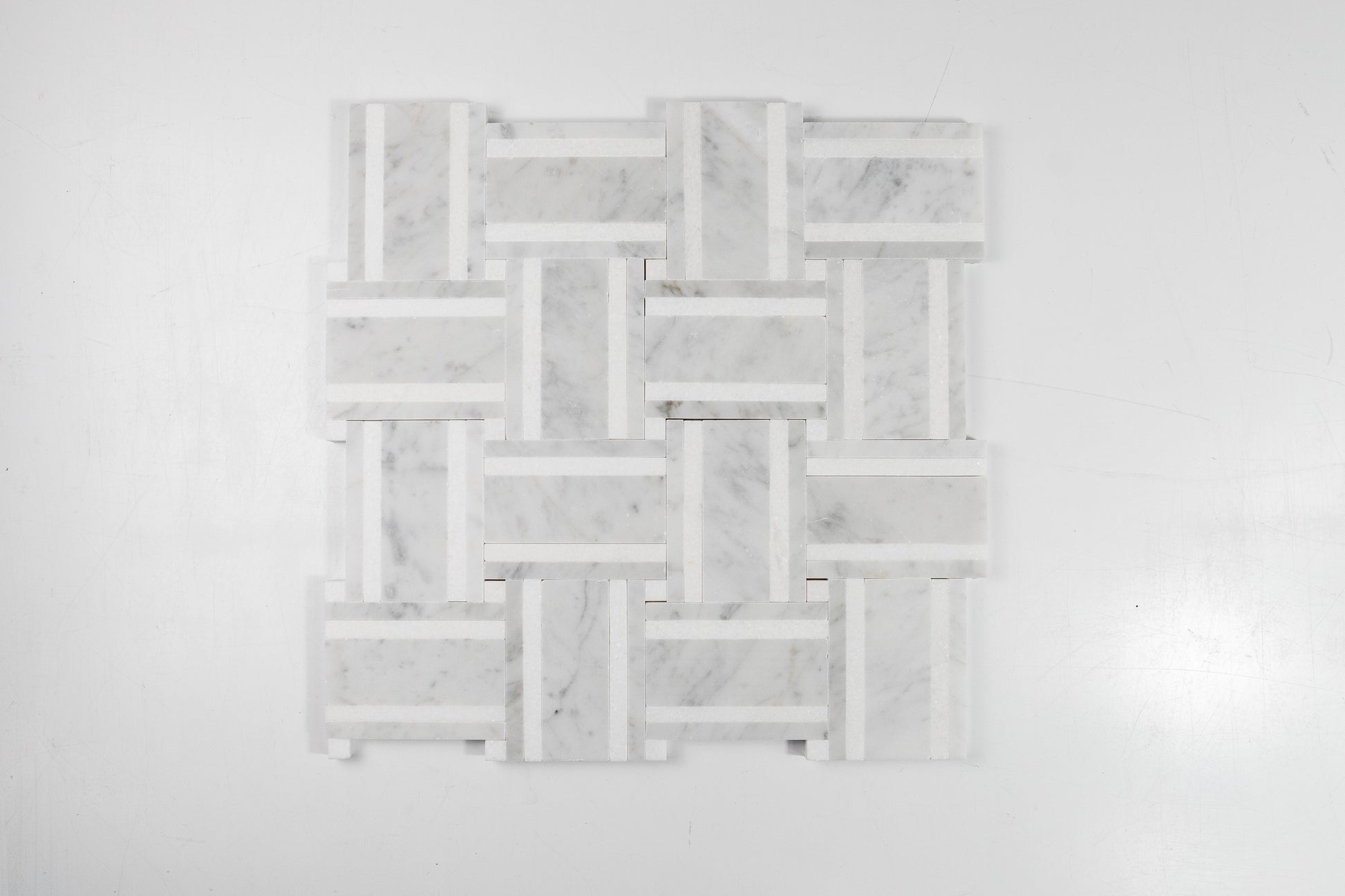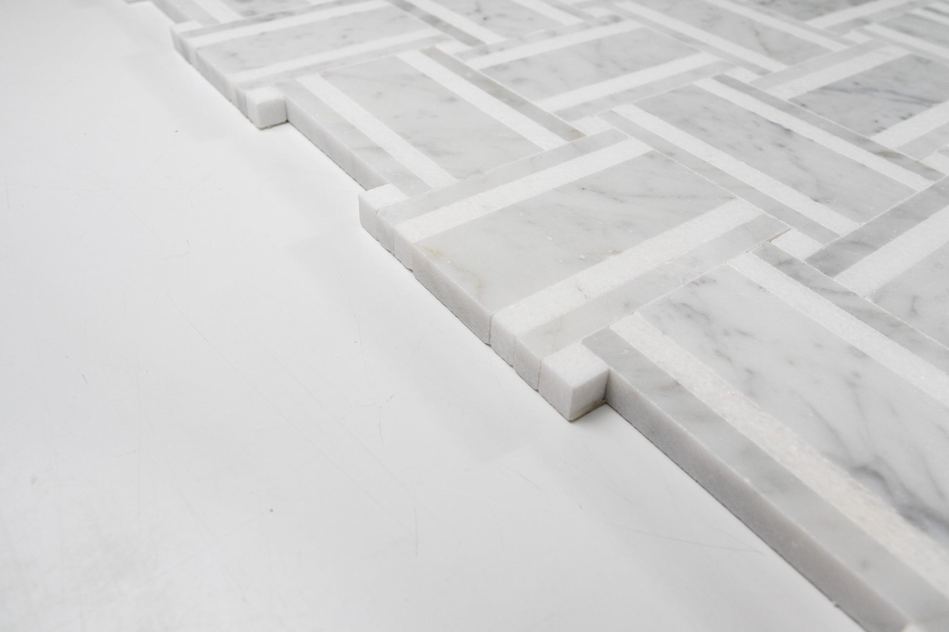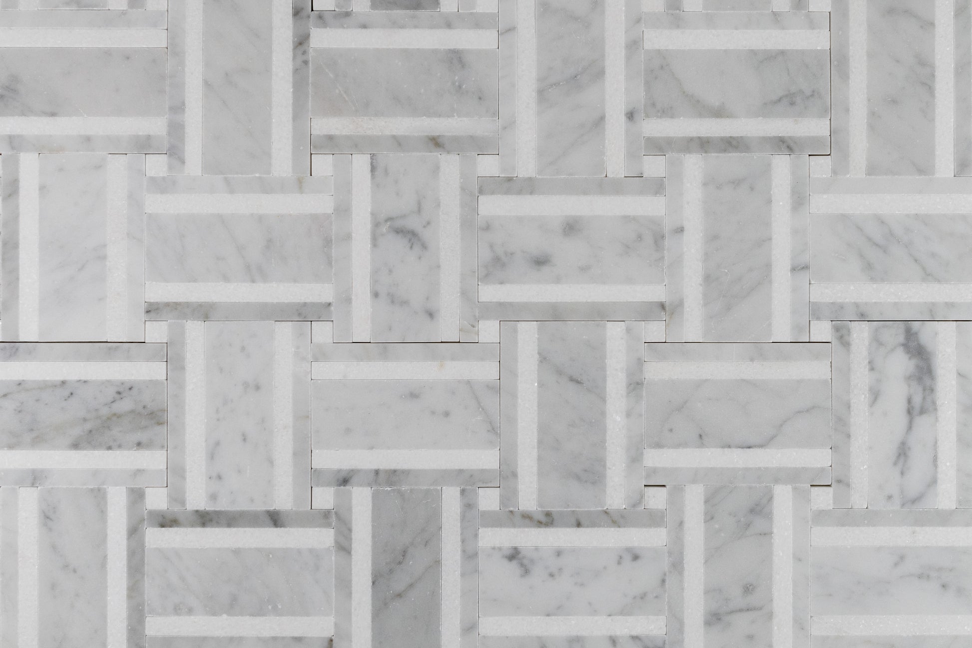 Grand Bacon by Stonebridge Mosaics is yet another classic staple for us. With clean geometric lines, this modern basketweave provides a soft elegant feel whether installed on a floor or a wall. For a different installation, try this diagonal on a backsplash! Offered in more than 5 different color ways, there is a Grand Bacon for any design.