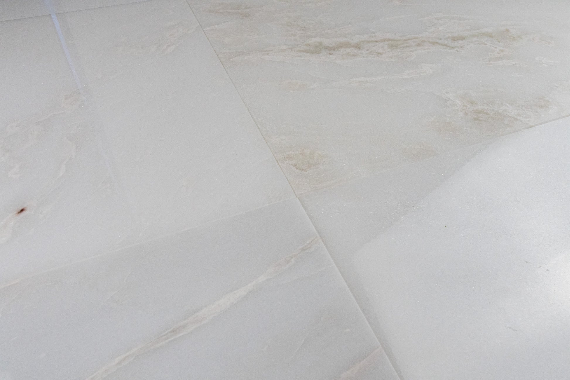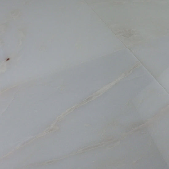 Introducing our captivating Ice Onyx, a rare gem that combines the translucence of onyx with the purity of ice white tones. This unique stone radiates a soft glow, creating an ethereal ambiance in any setting. The delicate veining meander through the surface, adding a touch of natural artistry. Ideal for backlighting or as an elegant statement piece, our Ice Onyx transforms spaces into luminous sanctuaries, embodying sophistication and timeless allure.