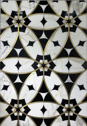 Leonardo follows the classic waterjet shapes show in art history all over the world. Make this waterjet dark and dramatic or soft and elegant. All Waterjet patterns are available for customization, allowing you to tailor stones, colors, materials, and finishes to match your unique vision.