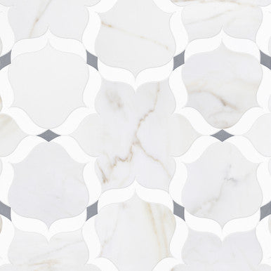 A more traditional waterjet pattern, Magnolia features a flower that is soft and beautiful. All Waterjet patterns are available for customization, allowing you to tailor stones, colors, materials, and finishes to match your unique vision.