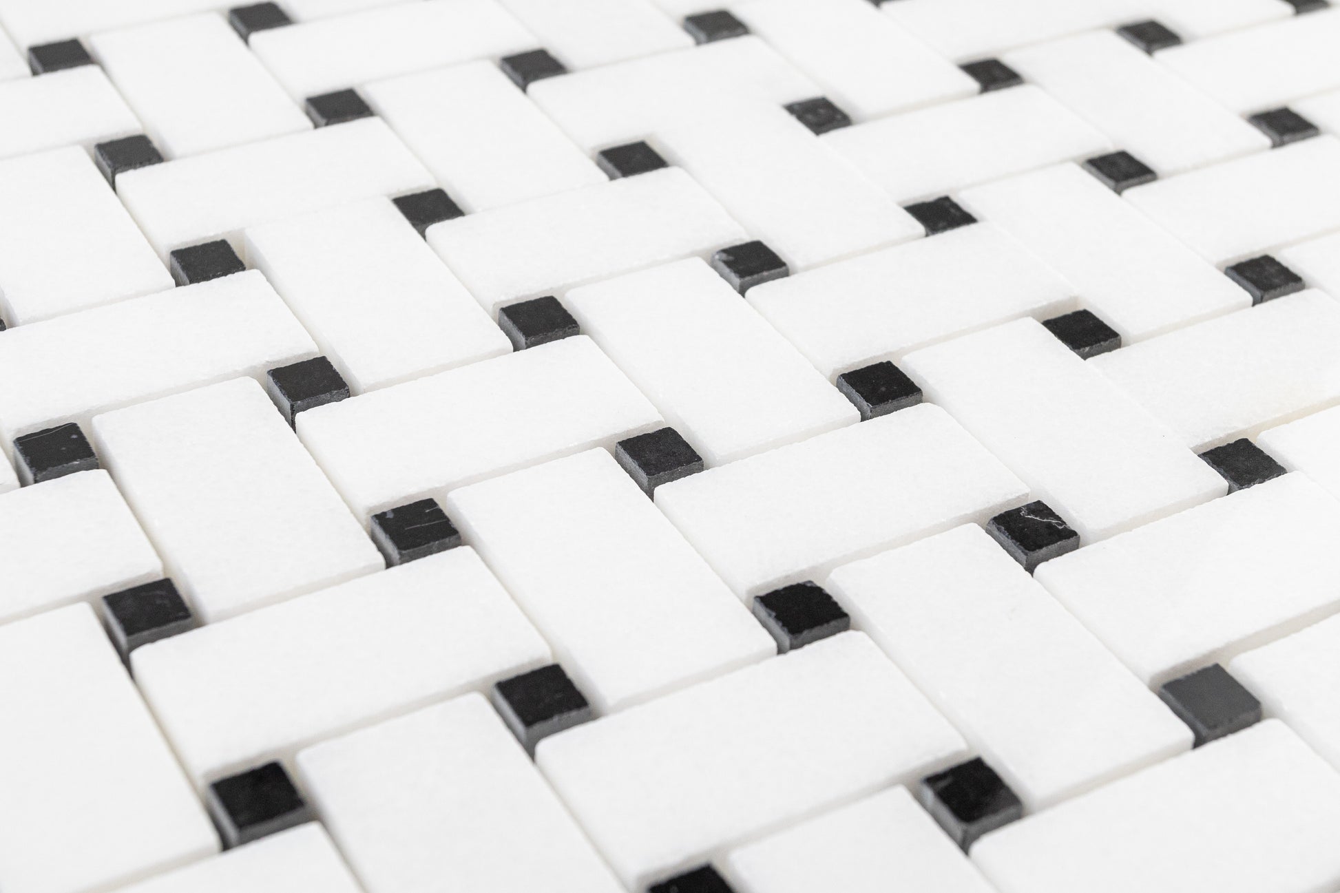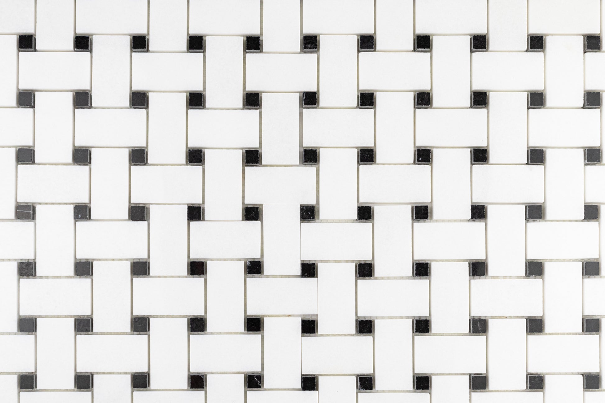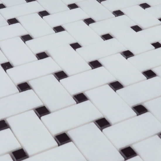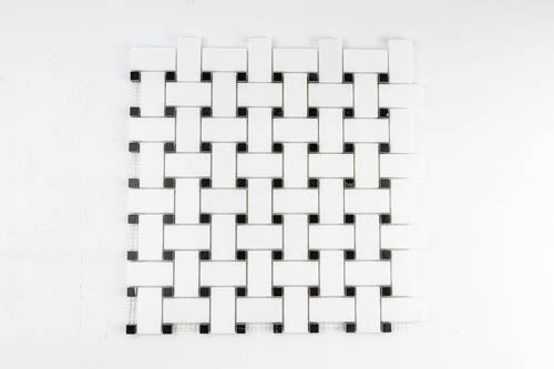Medium Basketweave - Thassos with Jet Black Dot