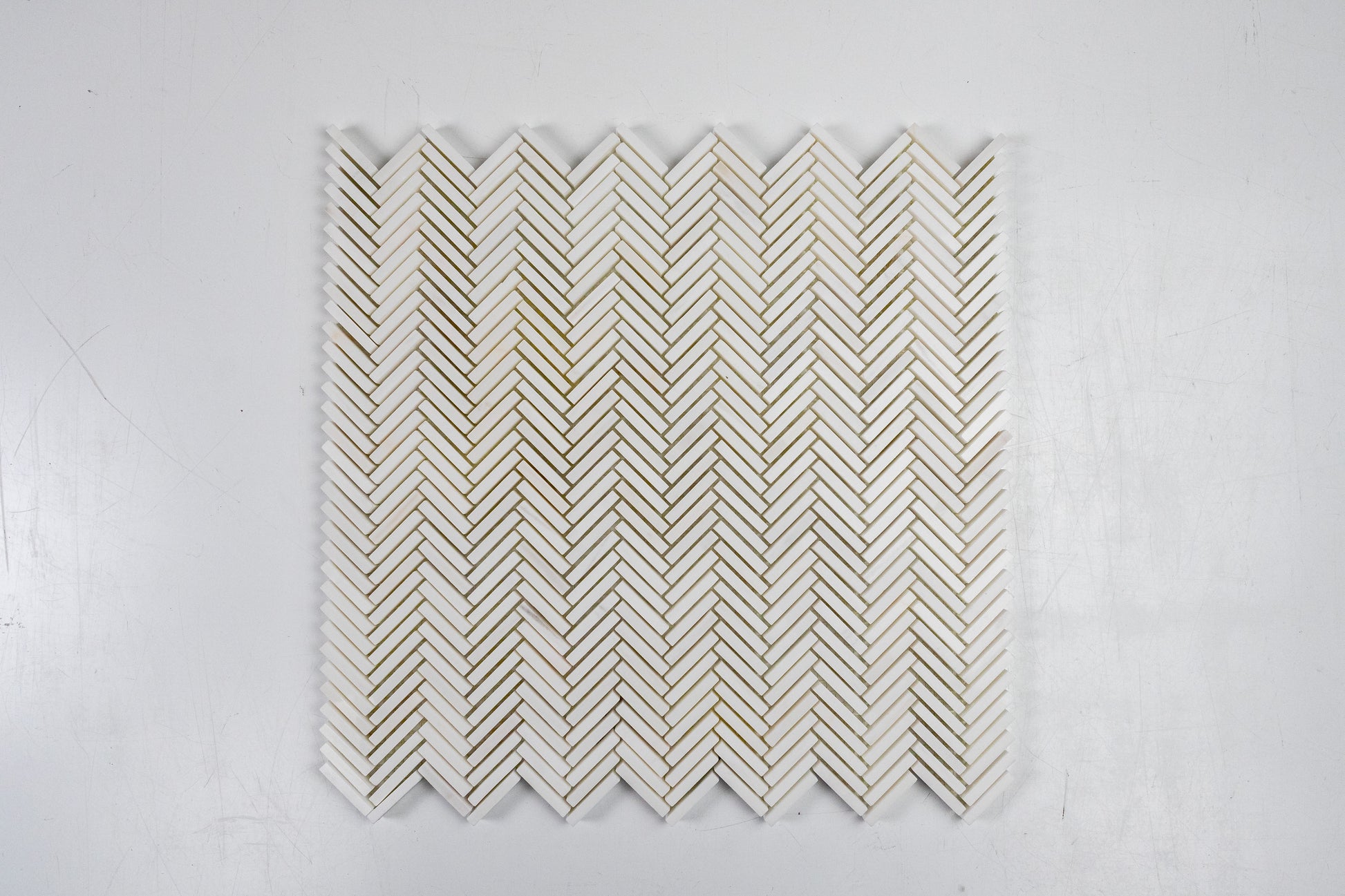 Tailored from luminous dolomite, our Mini Herringbone elevates a timeless pattern with a refined, small scale repeat. The crisp geometry and soft, milky veining create a luxurious, light-catching surface that reads both classic and contemporary. Beautiful as a statement backsplash or an elegant feature wall, this mosaic brings quiet sophistication to baths, kitchens, and beyond. Mesh-mounted for precise alignment, it delivers a seamless, couture finish in any space.