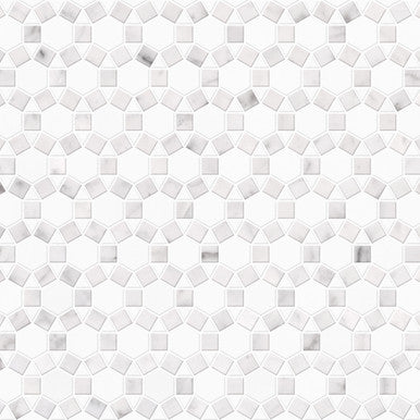 Timeless sunflower pattern from Stonebridge. A different take on a hexagon, this mosaics is offered in two different colorways perfect for shower floors, secondary baths and even laundry rooms.