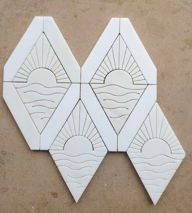 Calling all Coastal Projects! Sunrise Sunset waterjet gives all the vacation vibes in one mosaic. All Waterjet patterns are available for customization, allowing you to tailor stones, colors, materials, and finishes to match your unique vision.